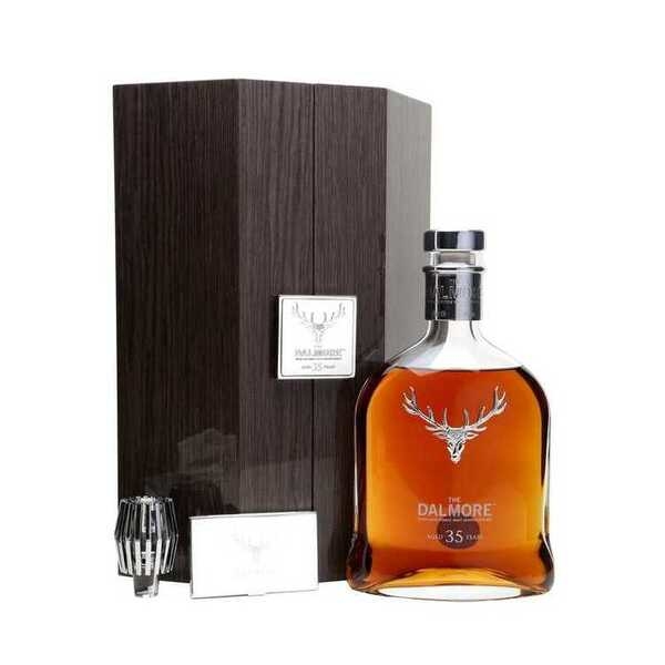 Description:Dalmore 35 has been aged in three types of cask:a Matusalem sherry, a bourbon barrel and a colheita-port pipe. Presented in a Baccarat Crystal decanter, this is classic rich Dalmore with notes of coffee, treacle, banana and orange.